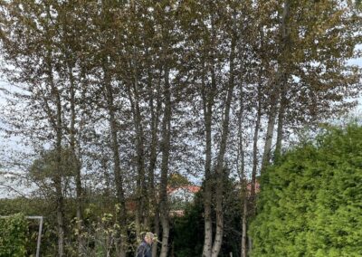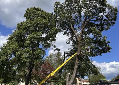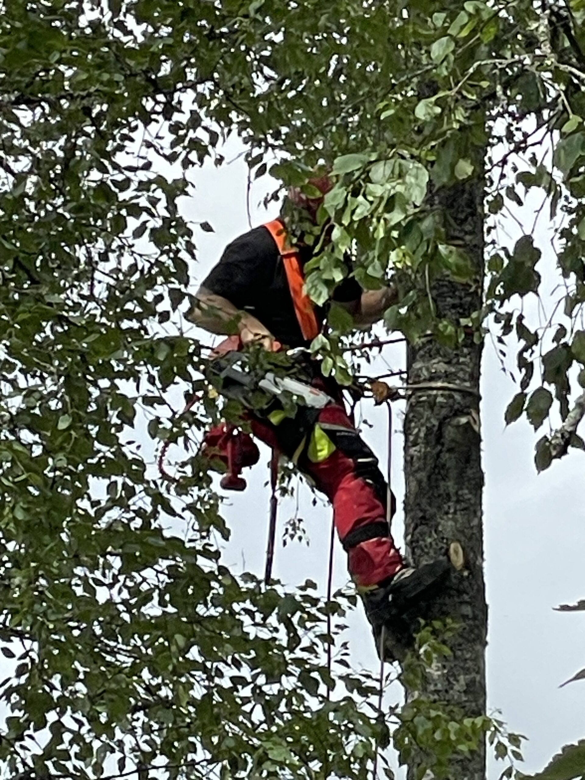 Ja, vi utför både vanlig trädfällning och sektionsfällning vid trånga eller riskfyllda platser, exempelvis nära hus, garage eller elledningar.
