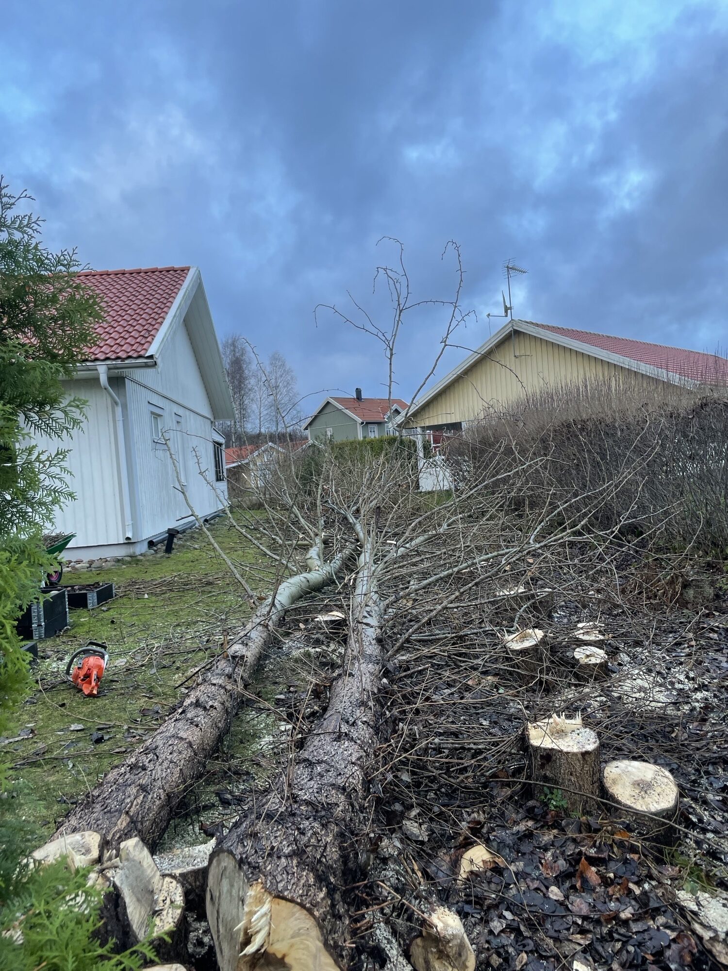 Ja, vi erbjuder bortforsling av både ris och stam om du önskar. Alternativt kan materialet lämnas kvar enligt överenskommelse.